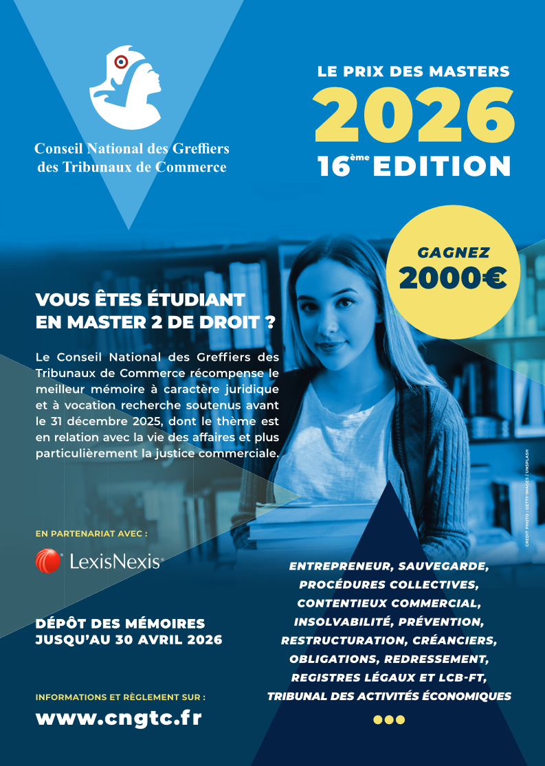 Les étudiants souhaitant participer à cette 16e édition du concours doivent adresser au Conseil national des greffiers des tribunaux de commerce leur mémoire par voie postale ou électronique, accompagné du formulaire de candidature complété, au plus tard le 30 avril 2026.